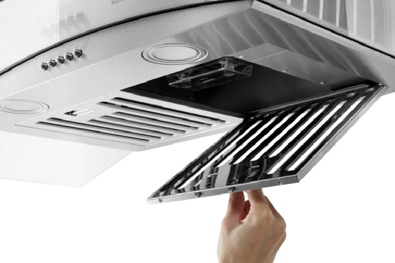 ควบคุมการทำงานด้วยปุ่มกด แผ่นกรอง Baffle filter Stainless steel